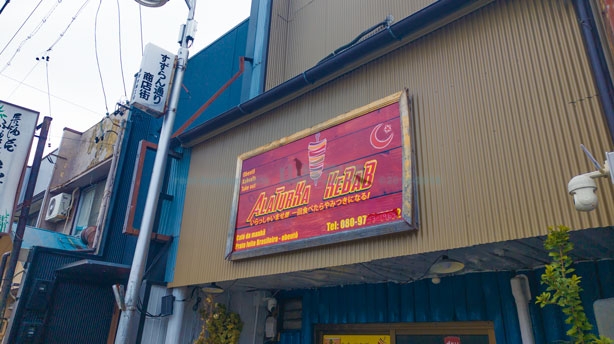 看板右上には月と星のマークがあります。月と星が描かれた国はいくつかありトルコもその一つ。でも三日月の角度からこれはパキスタン国旗です。ってことはパキスタン料理屋かな?