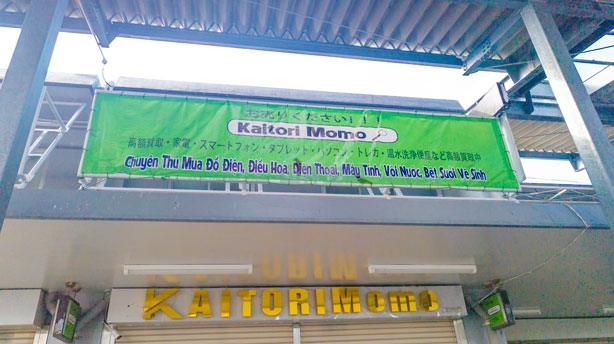 こちらの店は中古品買取店。日本語とベトナム語がかかれています。どこの言語がかかれているかでどこの国の店なのかはわかります。