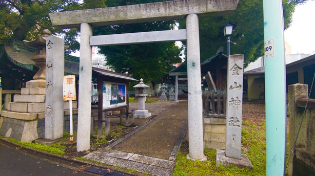 こちらは金山駅南側にある神社「金山神社」です。創建は15世紀頃、当地に住む鍛冶職人が勧請したのがはじまりです。