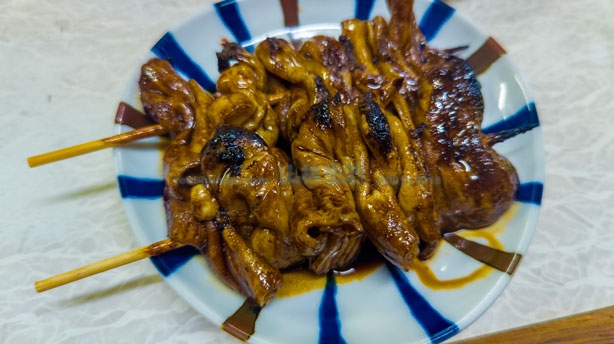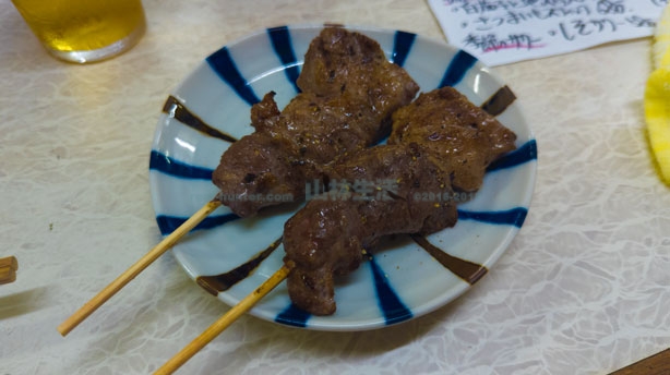 こちらはとん焼きというものです。おそらく豚の小腸もしくは大腸、一般的にはシロといわれる部位でしょうか。こちらも酒と相性が良い。