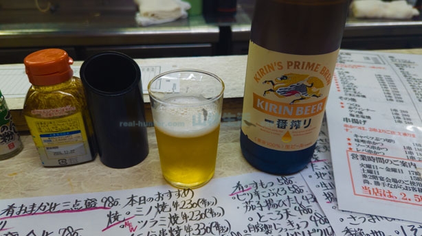 周りが赤星を頼む中、あえて一番搾りを選びます。