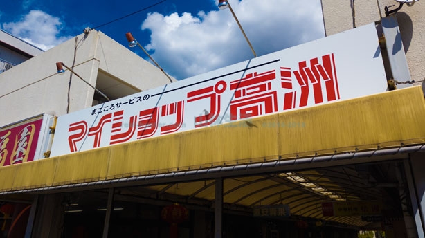 マイショップ高洲と書かれたアーケード街。