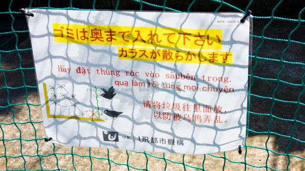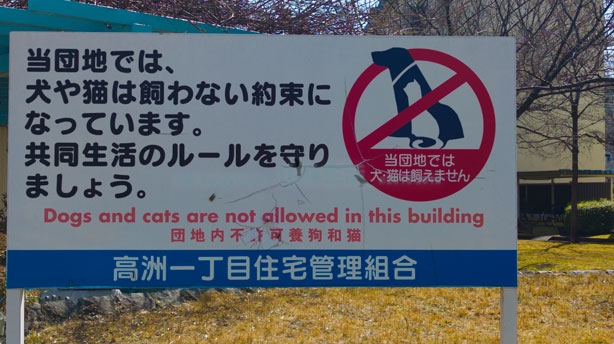 こんな感じで標識があります。こちらには日本語と英語と中国語がかかれてます。中国人が団地に多く住んでいるからなのでしょう。