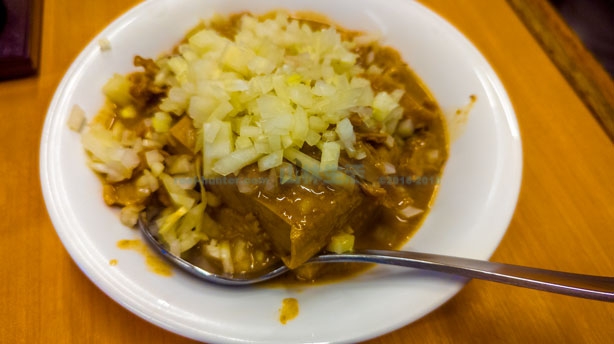 モツはしっかり煮込まれていて味濃い目。玉ねぎとの相性が良いです。
