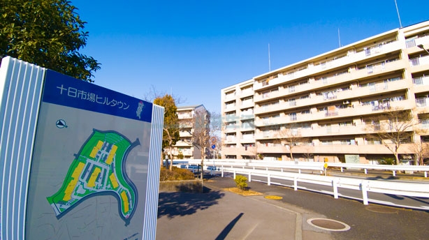 十日市場市営住宅があったところは十日市場ヒルタウンに名称が変わり、民間、UR、市営の団地が混ざる街区となっています。
