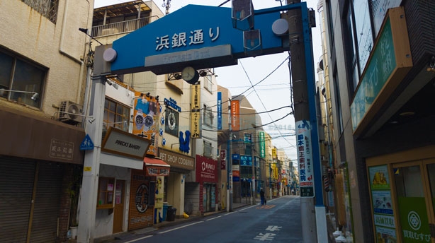 こちらは浜銀通りです。名前の由来は通り沿いに横浜銀行があるから。