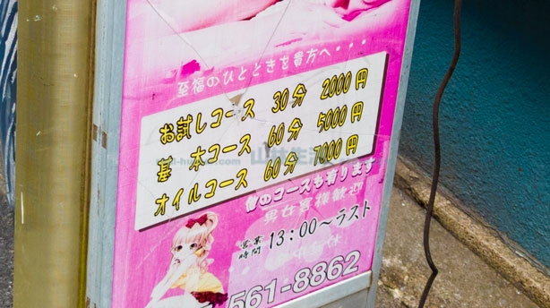 こちらの店だって、ほら、お試しコース、基本コース、オイルコース。