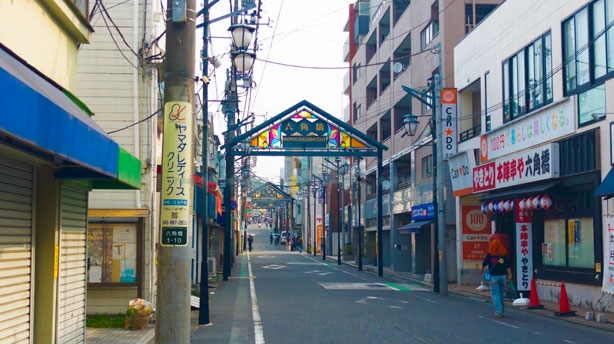 駅前から南に300mほど、その間に商店が軒を連ねております。
