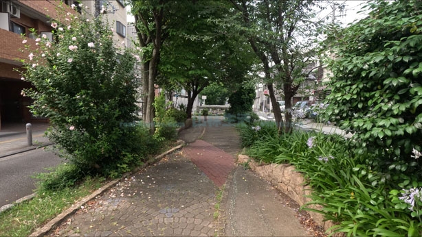 緑道の名の通り草木が植えられています。緑豊かで静かな街路です。