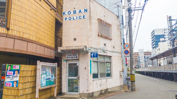 こちらは淀川警察署「西中島交番」です。あまり治安がよくなさそうなところにある交番。でも駐在してない様子。治安維持がされてなさそう。