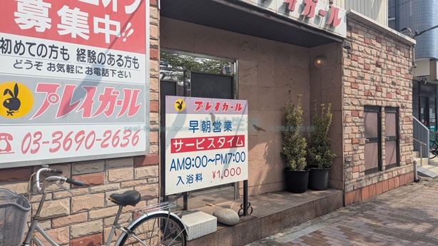 こちら葛飾区亀有に唯一残る特殊なお風呂屋さん。男性を次々と誘惑する女性という意味のプレイガール。お風呂屋さんにあるべき名前ではありません。次々と誘惑するってことは不特定多数かな?