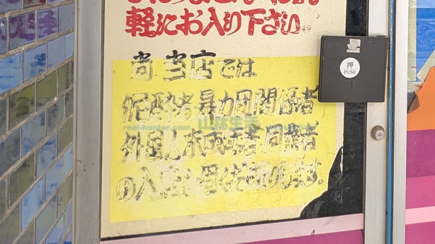 最近じゃ外国人大歓迎の店が増えていますが、かつてのこの手の店は外国人NGでした。歴史を感じますね。