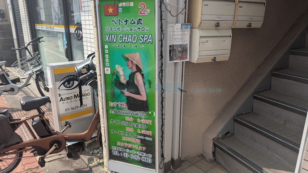 こちらは珍しいタイプのエステ店。この手の業種の多くが中国か韓国かタイか台湾。でもベトナム式が増えてもおかしくありません。在留外国人で一番多い国籍は中国ですがニ番目に多いのは韓国ではなくベトナムなんです。ここはアオザイ着た子がサービスしてくれそう。