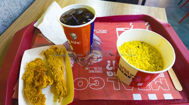 こちらはインドのケンタッキーフライドチキンです。タイやミャンマーにあるケンタッキーではライスがあるのが基本です。