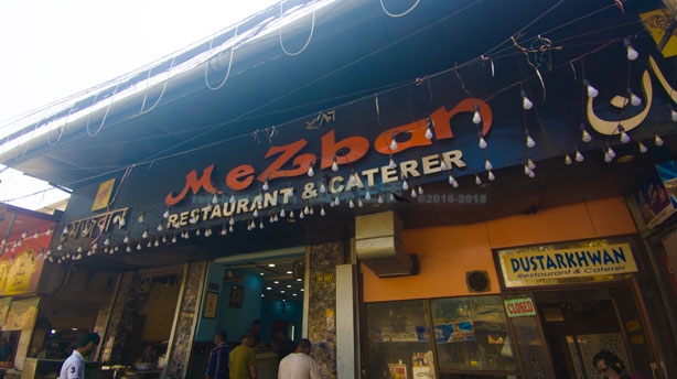 マルキアスSTとミルザ・ガリブ通りの交差点。ホテルに混ざってハラル料理店が多くあります。このあたりはムスリムエリアのようでバングラデシュ人が多くいる地域なんだとか。
