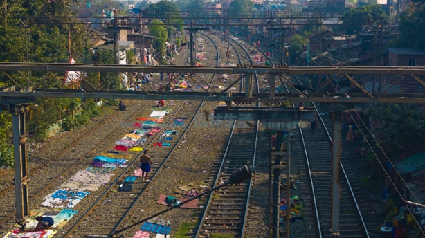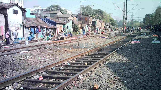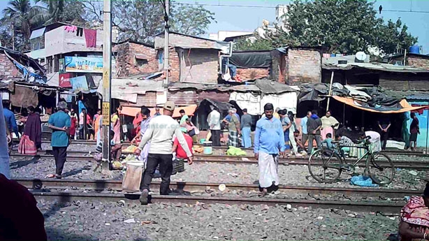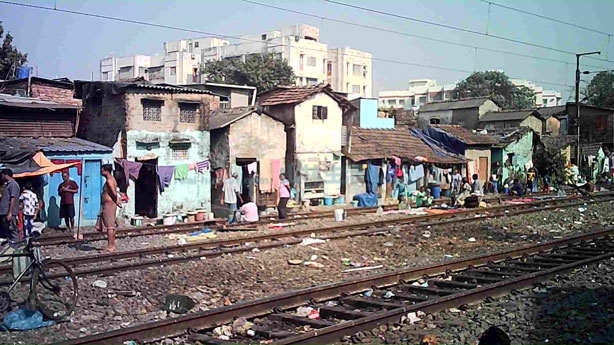 線路沿いにあるコルカタのスラム「ダクリアスラム」