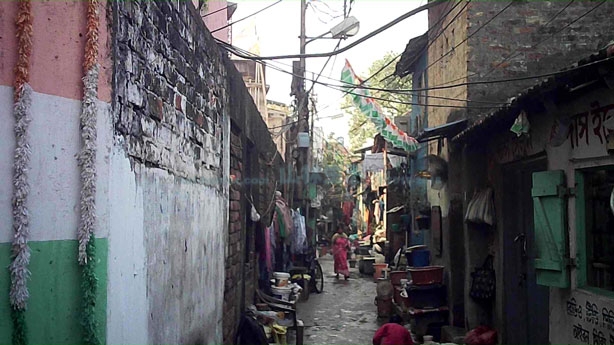 このあたりは路地がかなり入り組んでおり小さな家が点在しています。お店がある通りに関してはよくあるインドの街並み。