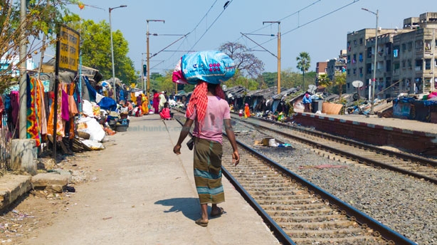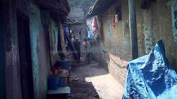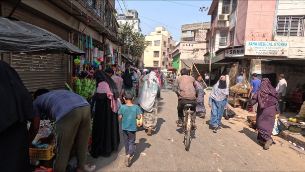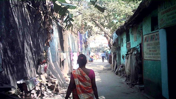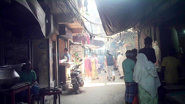 こちらは駅東側です。こちらの方はかなり入り組んでおり道は複雑です。様々な宗教の人が共存するエリアのようですが大半はイスラム教徒のムスリムコミュニティーでウッタル・プラデーシュ州、ビハール州からの移住者、バングラデシュからの移民が多い地域。ムスリムの人が多く住むエリアでスラム街ではあるもののイスラム街でもあります。