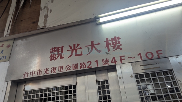 台中公園の南西側、公園路に面したところに大きなビルがあります。こちらは合作曁観光大楼という建物です。だいぶ年季が入ってますが見た目普通の商業ビル。中心地に近いからか人の往来も激しく