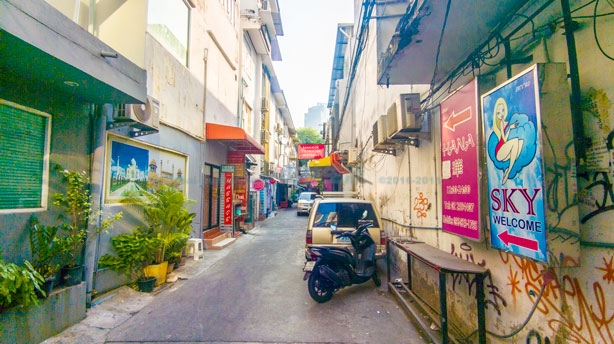 スクンビットソイ22の路地。明らかに風俗店みたいなところがあるんです。タイの法律で風俗営業は違法。違法?