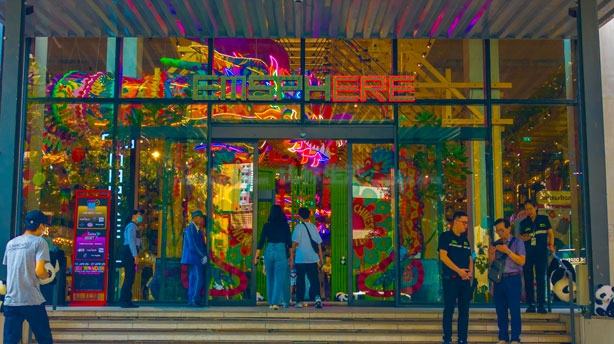 こちらはショッピングモール「エムスフィア」です。2013年よりずっと工事していましたが2023年にオープンしました。