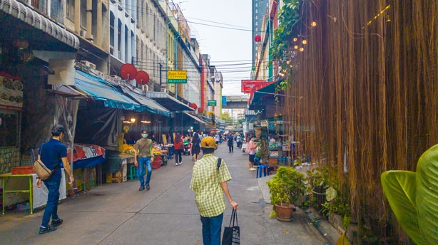 駅から徒歩4分くらいのところにある路地で飲食店が軒を連ねるエリアです。店先に屋台あり食べ物を売ってます。なんとなく昔のバンコクの雰囲気がある路地。なんか懐かしい感じです。