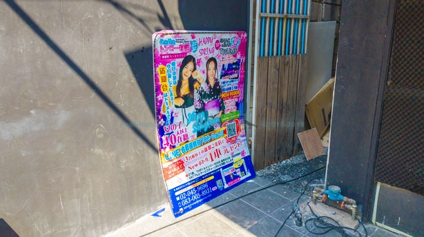 日本の歓楽街をそのまま再現すると駅前に怪しいエステ店ができるんです。そしてここは日本人街で日系ホテルの入り口そば。利用者は日本人なんでしょうね。そして私も10年前、こんな店を利用した気がします。